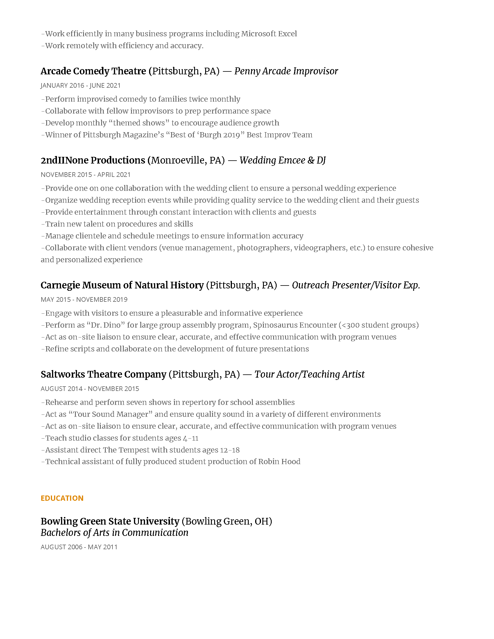 | Carnegie Museum of Natural History | Outreach Presenter / Visitor Experience | 2015–2019 |